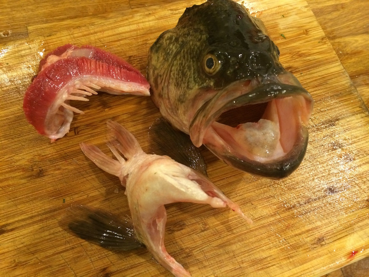 Step 3: Roll up your sleeves. Pry open the fish and pull out the guts by hand, you may need to make cuts to connective tissue holding the guts to the cavity wall. Try to pull the organs out without crushing them so they ooze stuff back into the fish. You don’t need to separate guts from gills if you are removing gills. Rinse.